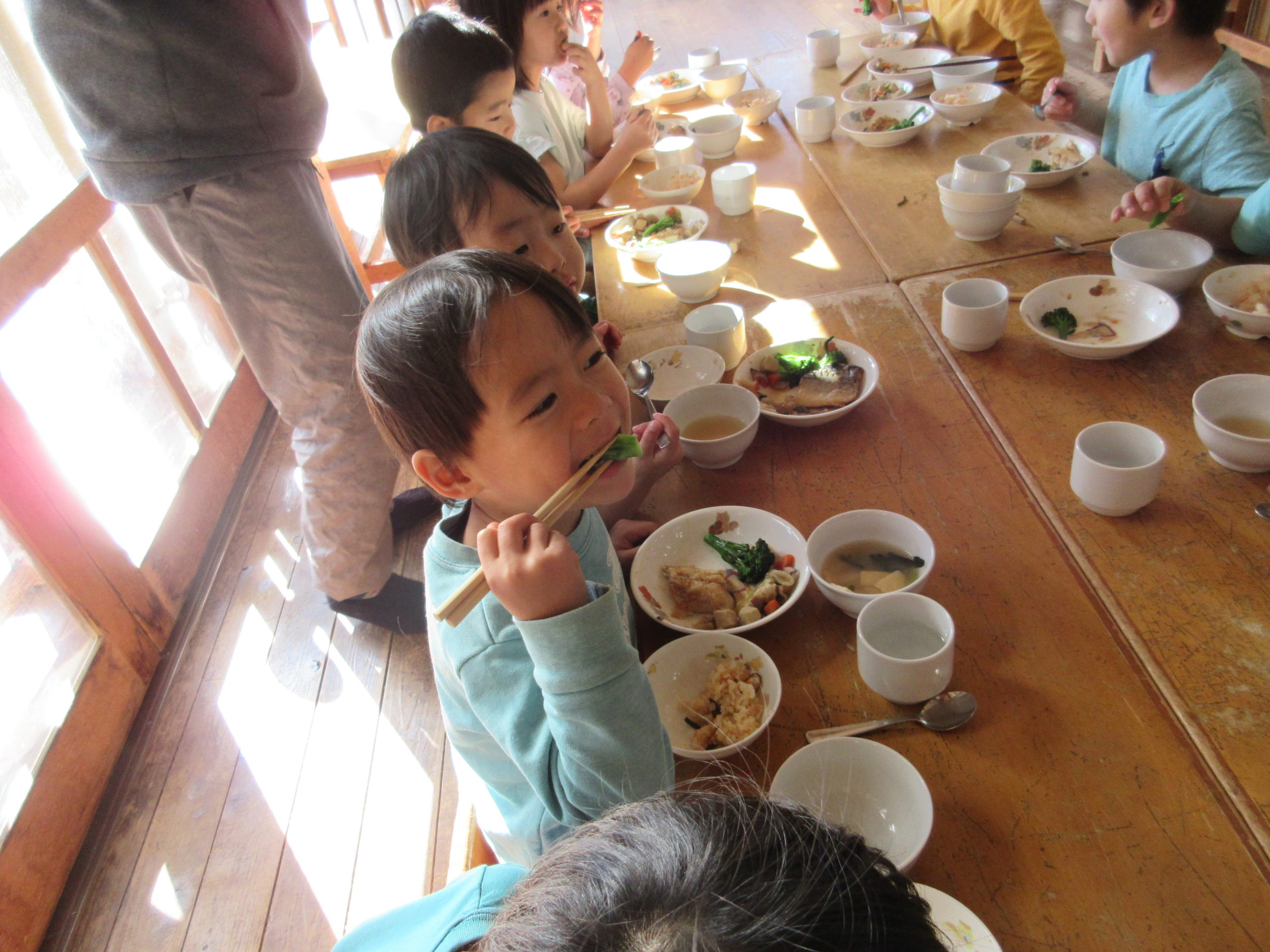 採れたてを塩味で蒸し焼きにするのが一番美味しいから!と早速給食に提供。