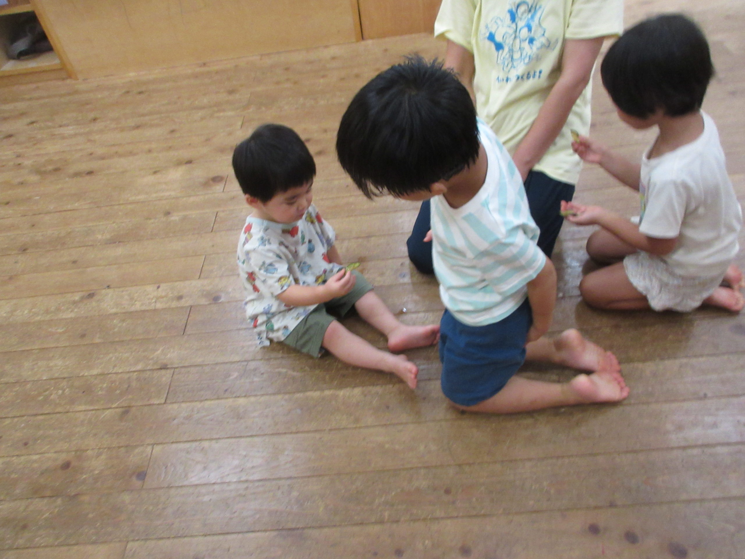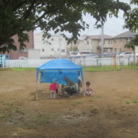10時頃バケツを抱えて帰ってきた以上児の子どもたち
