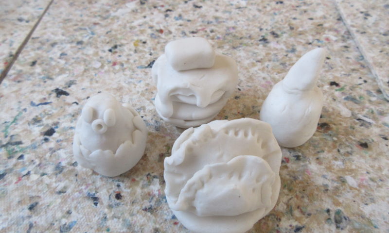 左から「醤油さし、ホットケーキ、餃子、ホットケーキのシロップ」